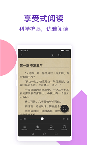 3、享受式阅读:护眼模式、仿真翻页、自动阅读等多种智能阅读操作,采用夜间眼睛舒适的光线对比度帮助你科学护眼。