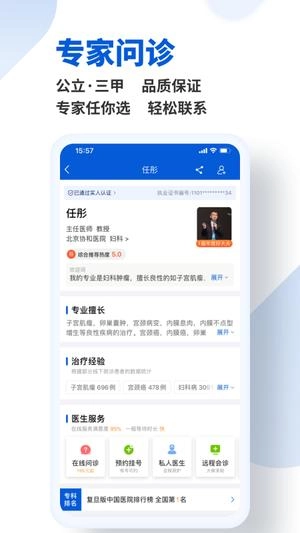 可免费向正规大医院的专家进行提问,咨询专家建议、预计花费、诊疗方法,甚至还能询问联系住院床位相关事宜,且均由专家本人予以回复。