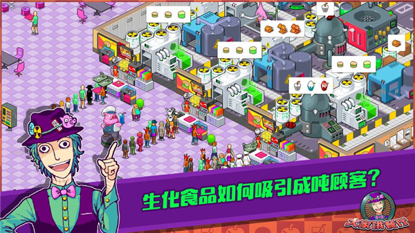 1、玩家负责经营一家快餐厅,通过升级不同食物生产机器来满足更多客人的需求,同时赚取更多的游戏货币来升级扩建自己的餐厅。2、玩家可以在电话亭中获得更多不同需求和外貌的顾客。