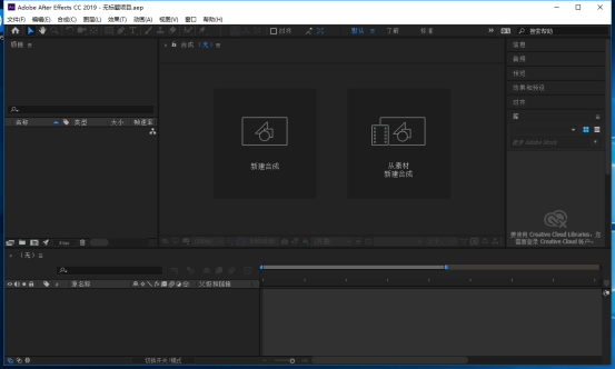 在Ae cc2019中用户可以将Illustrator或Photoshop文件等资源直接拖放到CC库面板中,还可以快速访问您的After Effects合成,与团队成员分享库和资源或者导出并存储到项目中。