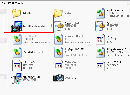 在证照之星的安装目录下我们会看到这样一个可执行程序CallRemoteCapture.exe,该程序用于调用相机的驱动程序来进行拍摄。