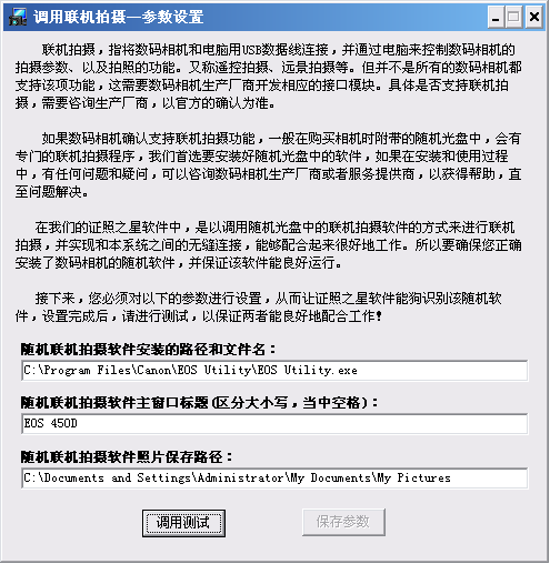 3. 联机拍摄软件照片保存路径,这里我们可以在运行的那个联机拍摄窗体里面找到这个路径,然后填写进去,就可以了(如下图)。