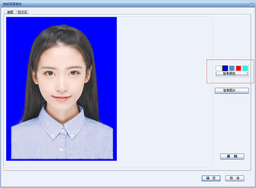 点击“背景处理”,弹出“智能背景替换”对话框。按照下列步骤进行背景替换: