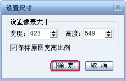 也可以通过“自定义尺寸裁切”来裁剪照片。点击“自定义尺寸裁切”,弹出“设置尺寸”对话框,设置像素的宽度和高度,如果选择“保持原图高宽比例”,则调整高度或宽度时,宽度和高度也会同比例发生变动,点击“确定”按钮,按钮弹出“自由裁切工具”,拖动裁切框至合适的大小和位置,点击“确定”完成照片裁切。