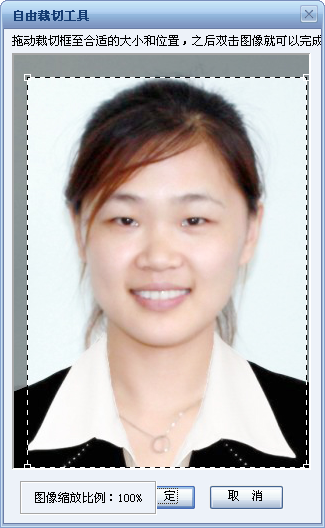 点击“手动裁切”,弹出“套框裁切工具”对话框,拖动裁切框至合适的大小和位置,双击照片即可以完成裁切。