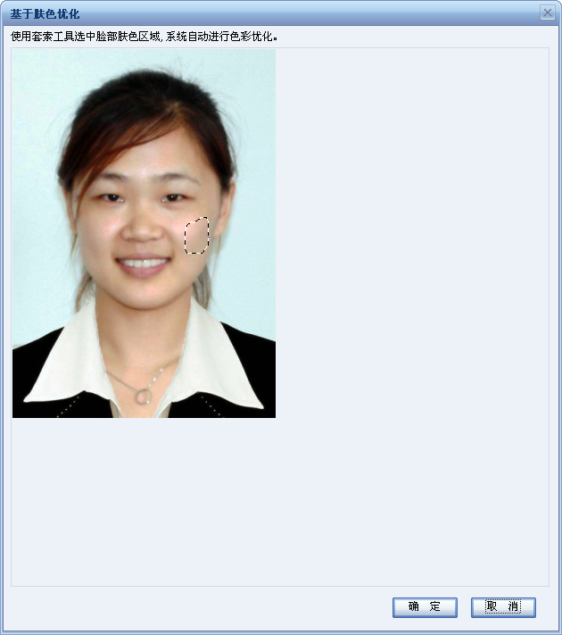 点击“色彩优化-自动色彩修正”,程序将会自动优化选定照片色彩;也可以利用“基于肤色优化”工具来进行照片色彩优化,点击“色彩优化-基于肤色优化”,使用套索工具选中脸部肤色区域,系统将自动进行色彩优化。