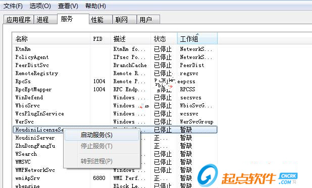 10、继续在任务管理器界面打开HoudiniLicenseServer服务,点开始