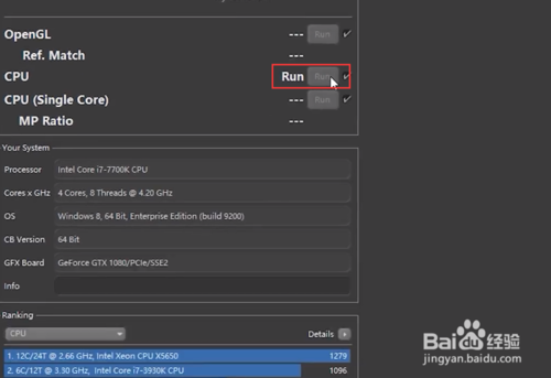 点击左上角CPU栏位的Run",即可开始测试处理器(CPU)的分数,测试完成即可得到CPU的分数: 412cb