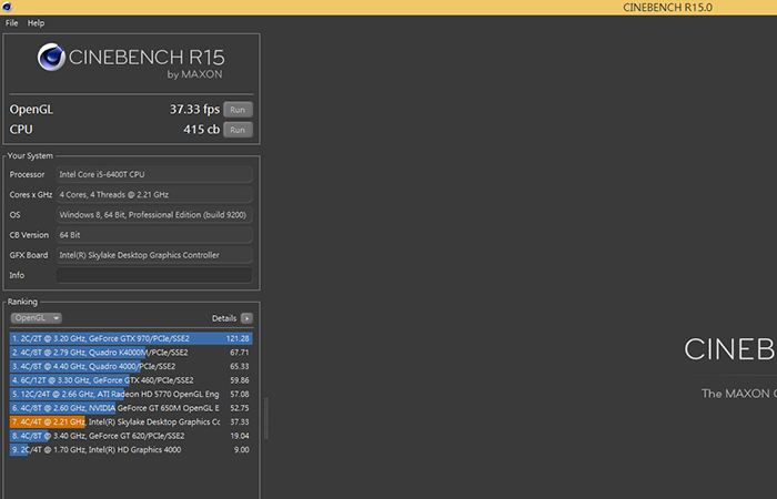 5、可以使用命令行选项启动MAXON CINEBENCH. 如何使用命令行启动程序请参阅您所使用操作系统的手册