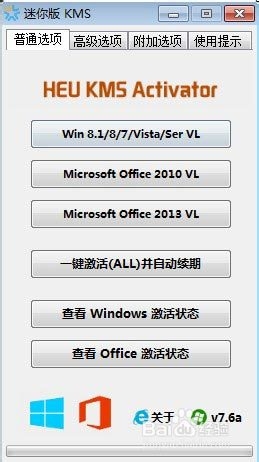如果要激活WIN系统,那么就按“WIN 8.1/8/7/VISTA/Ser VL”按钮,激活完之后,使用“查看Windows激活状态”按钮检查Windows激活状态;