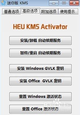 “安装Windows GVLK密钥”和“安装Office GVLK密钥”按钮是用来安装GVLK密钥的,通常情况下是用不到的,只是某些特殊情况下需要安装GVLK密钥才会用到这个按钮。盲目操作可能造成已经激活的版本失效。