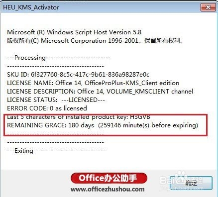 然后可以点击“查看Office激活状态”,看到Office2013的激活时间为180天。如下图所示。