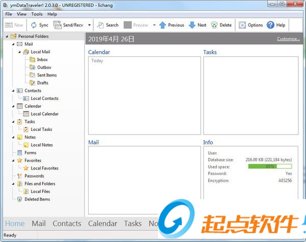 ymDataTraveler!可以充当独立的电子邮件客户端,从任何PC发送/接收电子邮件,而无需安装任何其他电子邮件系统。
