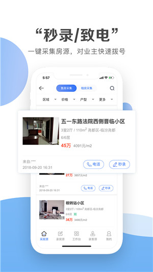 1、工作台办公,操作方式更流畅。2、房源,一键秒录,快速拨号。