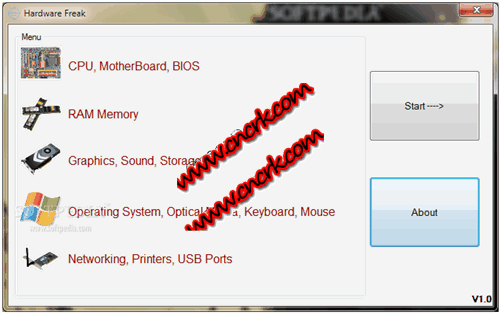 hardware freak是个实用的免费小程序,为你提供系统的各方面详细信息。包括:cpu, bios, 主板、内存、显卡、声卡、硬盘、扩展存储设备、操作系统、网络、打印机、键盘、鼠标 和usb口等等。