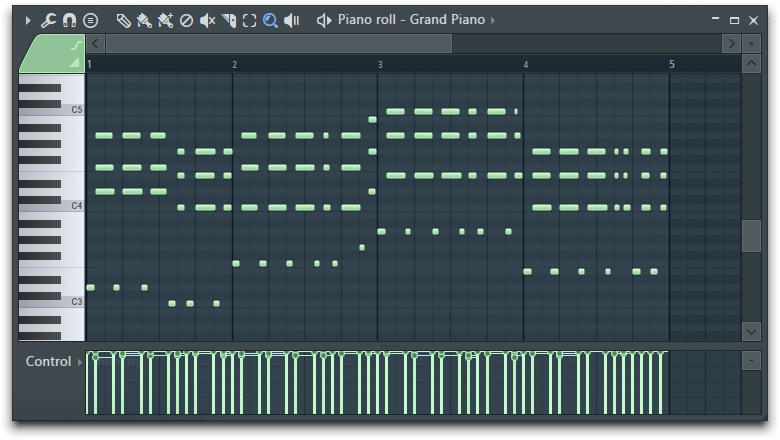 FL Studio 的钢琴卷帘编辑窗口可以说是业界最好的编辑窗口。可手动自动录入音符,并且包含了很多非常实用快捷的工具来帮助您实现复杂的乐谱编辑和操作。