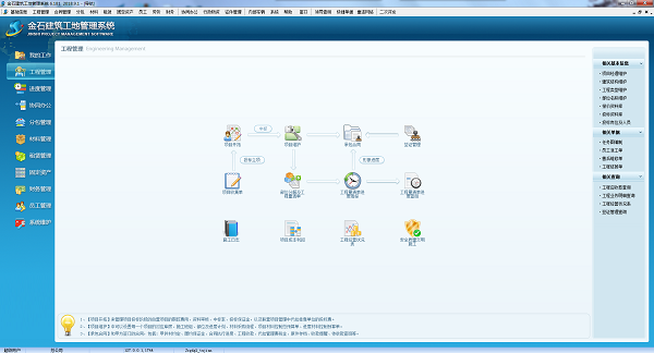 金石建筑工地管理系统官方版对工程的投标管理、中标后的进度管理、分包管理、采购招标、材料管理、租赁管理、固定资产管理、员工管理、劳务管理、资金管理、押金管理、发票管理、税金核算、联营管理、文档资料管理、物资管理、安全质量管理、证件管理、车辆管理、工程结算、等进行全方位管理,并提供强大的OA功能,能够实现各部门之间的数据共享及业务单据网上签批审核。并且提供了强大的自定义工作流驱动和各种流程开关,企业可根据自己情况自行设定,从而规范企业管理、让工作流程正归化、简单化。通过工作流,让信息送审、审批更贴近日常公司管理模式,申请人可随时看到当前业务的审批进度和各领导的审批意见。