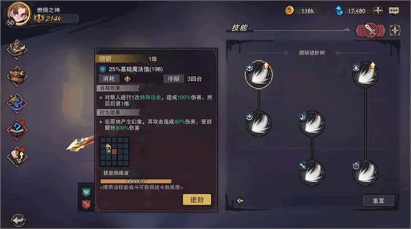 当操作技巧足够娴熟时,就能解锁技能的进阶路径,升级后的技能会附带额外的衍生效果。