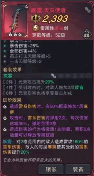 兵器被划分为冰、火、雷、毒这四种属性类别,每一件配备的器具都具备各异的升级进阶路径以及套装组合所带来的特殊效果。