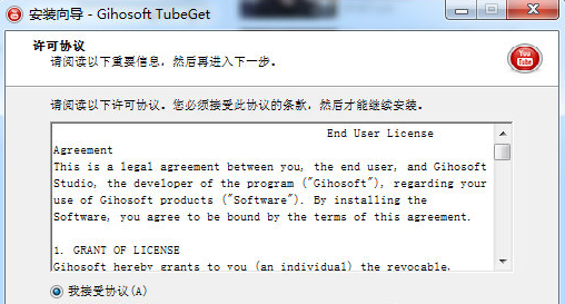 1、下载Gihosoft TubeGet安装包,双击打开2、选择接受协议