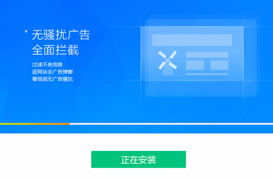 4、ADSafe净网大师正在安装中,你只需要等待安装进度条完成就可以了。小编亲测安装速度是很快的,大概一分钟就可以完成安装。