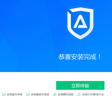 5、ADSafe净网大师安装完成,出现下图界面,我们可以看到在界面下方还有附加的安装选项,我们可以根据自己的需要来选择,如果不需要取消勾选后点击立即体验就可以打开软件来使用了。