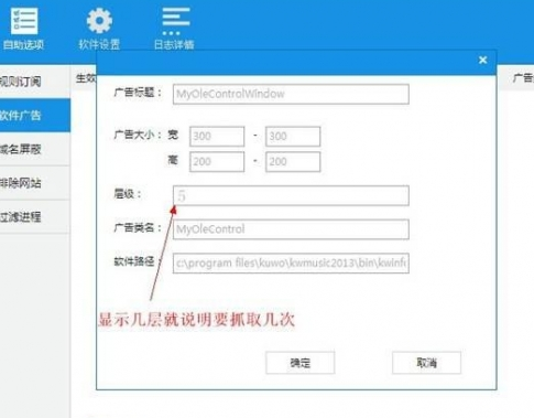 3、小编以酷我音乐弹出的广告弹窗为例,我们鼠表左键点击“窗体抓取”选项,然后不要松开鼠标,一直移动到广告弹窗的位置,如下图所示,我们移动到广告位置之后松开鼠标就可以了。