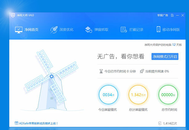 ADSafe净网大师可以过滤上网流量中的广告素材和无关代码,减少网页浏览上网流量30%,极速冲浪更惬意!