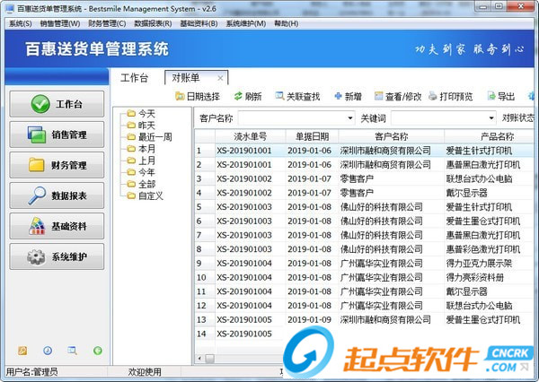 8、自动生成对帐单:根据录入的送货单自动生成对账单,无需重新录入数据,对账单格式任意调整,可以将对账结果一键导出至EXCEL或PDF;