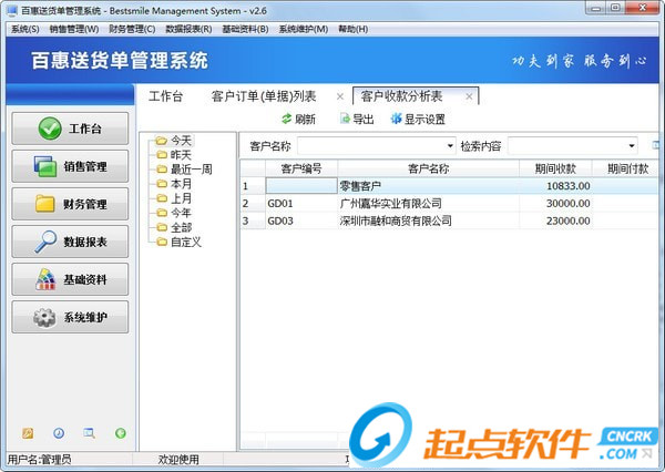 15、送货单、订单可直接收款,也可以另外开具客户收款单,自动统计客户欠款情况;