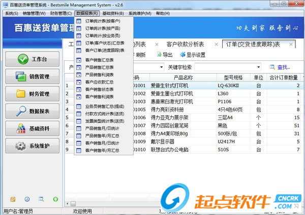 送货单软件提供多个统计报表,多维度进行统计,客户销售汇总表、产品销售利润表、客户产品交叉表等