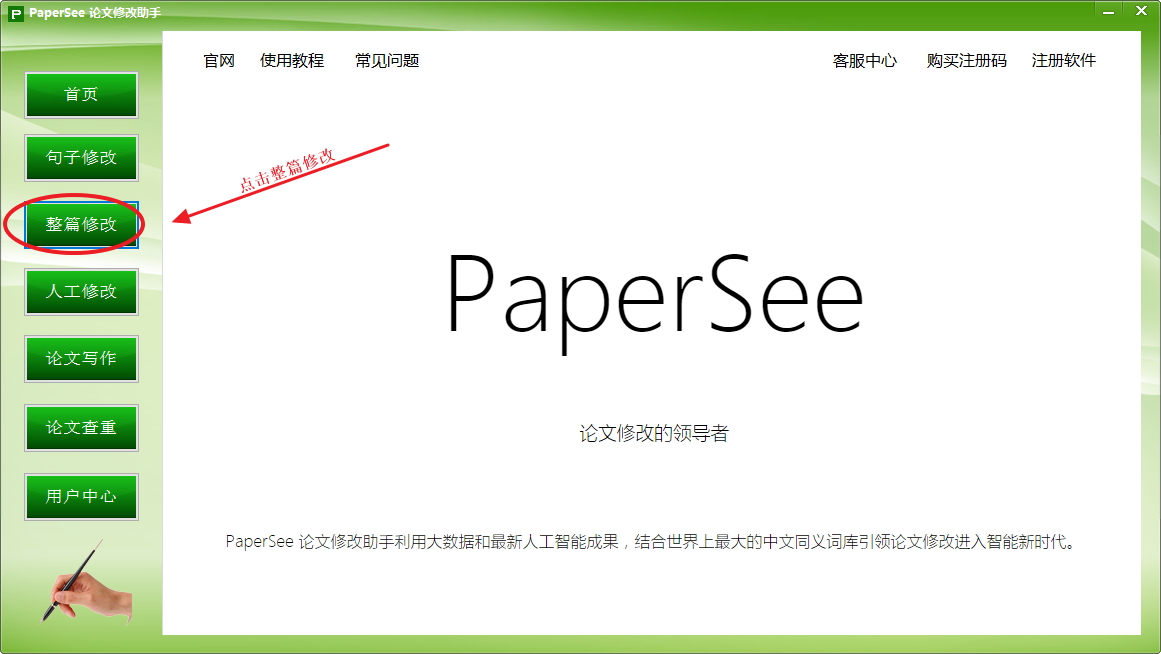 1.打开软件,点击软件左侧的“整篇修改”。