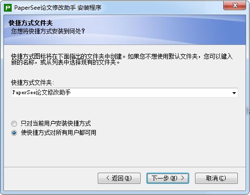 5、papersee破解版已经准备好了安装,包括了安装文件夹、附加快捷方式,点击下一步;