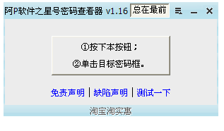 阿P软件之星号密码查看器是一款可以查看星号密码的软件。星号密码查看器使用简单,请不要把星号密码查看器用在非法的途径上。
