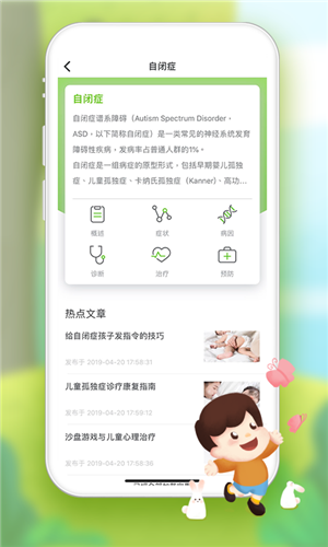 1、改变了现代人的关注孩子的方式,便于你通过这里对孩子全面的进行了解。2、随时在线都能评估你的孩子的健康成长情况,便于及时给出治疗方案。