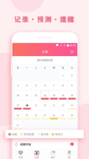精美的交互界面专为美丽的你设计主面板综合月经周期的各种提示,简单清除、一目了然