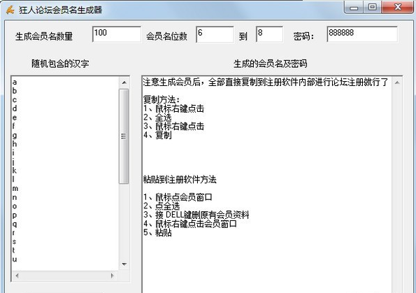 3.对步骤三(已注册会员设置)进行配置:要求设置在那里的会员帐号密码都是已经在您的论坛注册了的,而且每个会员帐号、密码要在同一行,填完一个会员帐号密码后要回车,帐号和密码之间的空格要10个空格左右。