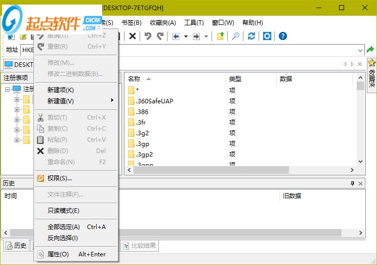 自动分析注册表项和值中的数据,如果其中包含ProgID、ClassID、文件路径或网页地址,可以通过上下文菜单进行相应的跳转。