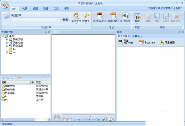 软件特性硕思闪客精灵企业版支持大量数据的反编译和导出是一款企业版的shockwave Flash 影片反编译的工具优点,它不但能捕捉、反编译、查看和提取shockwave Flash 影片(.swf和.exe格式文件),而且可以将SWF格式文件转化为FLA格式文件。在任意一个大容量的Flash影片上都能轻松的完成反编译和数据元素的导出。它让用户能够批量反编译多文件和批量导出FLA文件及资源。硕思闪客精灵还提供了一个辅助工具--闪客名捕,它是一个SWF捕捉工具。当用户在 IE浏览器或Firefox浏览器中浏览网页的同时,可以使用它来捕捉Flah动画并保存到本机。