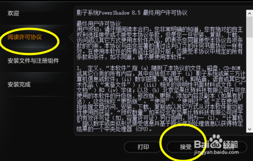2、点击安装程序之后我们下一步会要求接受下协议,我们点击接受下一步。