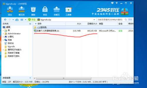 4、对《扣缴个人所得税报告表》压缩文件进行解压后,打开《扣缴个人所得税报告表》,按照要求填写相关信息。注意,免税所得应等于收入额但不能大于3500。