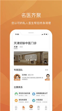 3、中医特色:以中医学科带头人、国务院特殊津贴专家为代表的国医大师和省级名医作为诊疗专家,用道地中药、革新方剂、全息理疗调理健康。