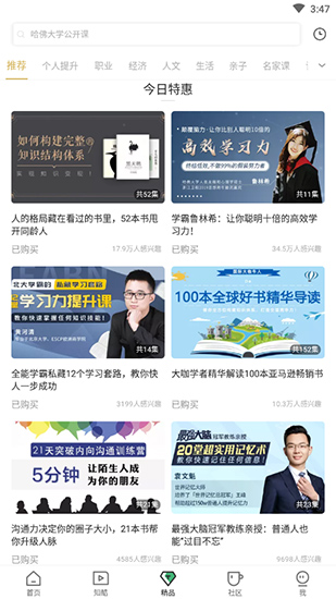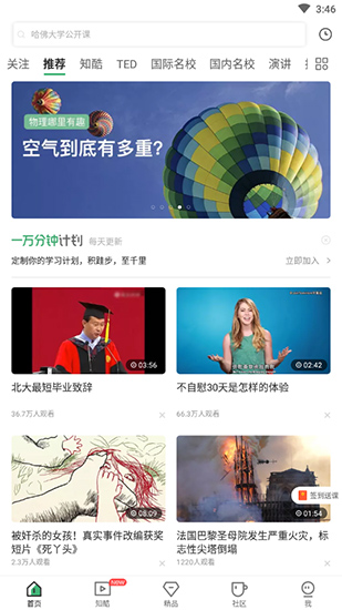 3、贴心的学习体验:支持视频免费离线下载,等车等人、上学下班、书房卧室、想什么时候看都随你。根据每个人的学习行为,向用户提供个性化内容推荐,帮你毫不费力地找到感兴趣的知识点。通过课程跟帖与万千"同学"交流心得、争论观点。