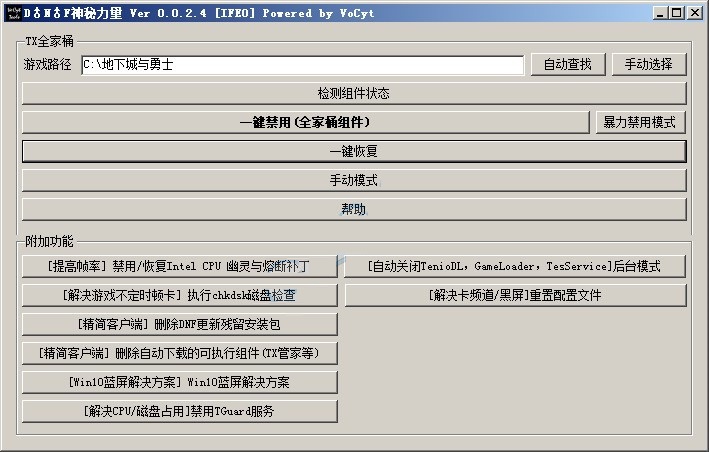 1.新增[暴力禁用模式],可扫描目录下所有相关插件并禁用,详情参阅提示文本2.新增[重置配置文件]功能,删除DNF默认配置文件,详情参阅提示文本