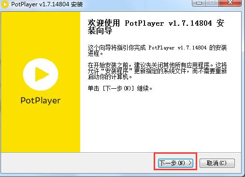 3、接着就会打开POTPlayer安装向导,如下图所示,点击“下一步”继续;