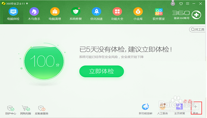 方法一、首先要下载安装360,然后打开软件,在点击右下角的“更多”。