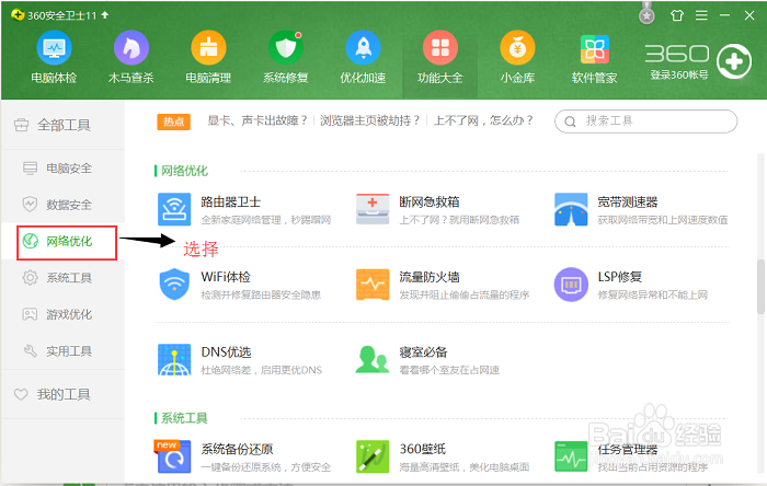 进入新界面之后,左边是一个导航栏,然后选择导航栏里面的网络优化。
