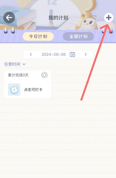 2、当进入计划页面,点击页面右上角的新增按钮,以此准备创建新计划。
