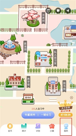 1. 首先进入专注崽崽首页,点击下方的“自习室”,从而进入学习场景。