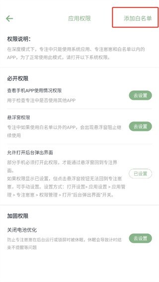 4、当进入权限管理页面时,点击【添加白名单】按钮。
